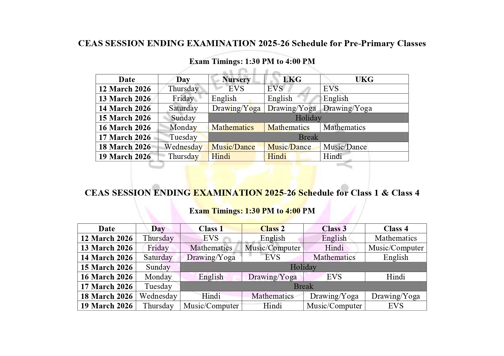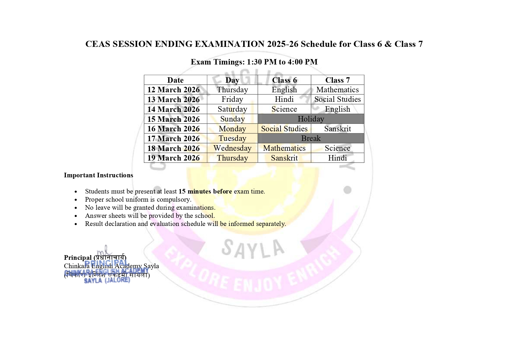 Exam Time Table
